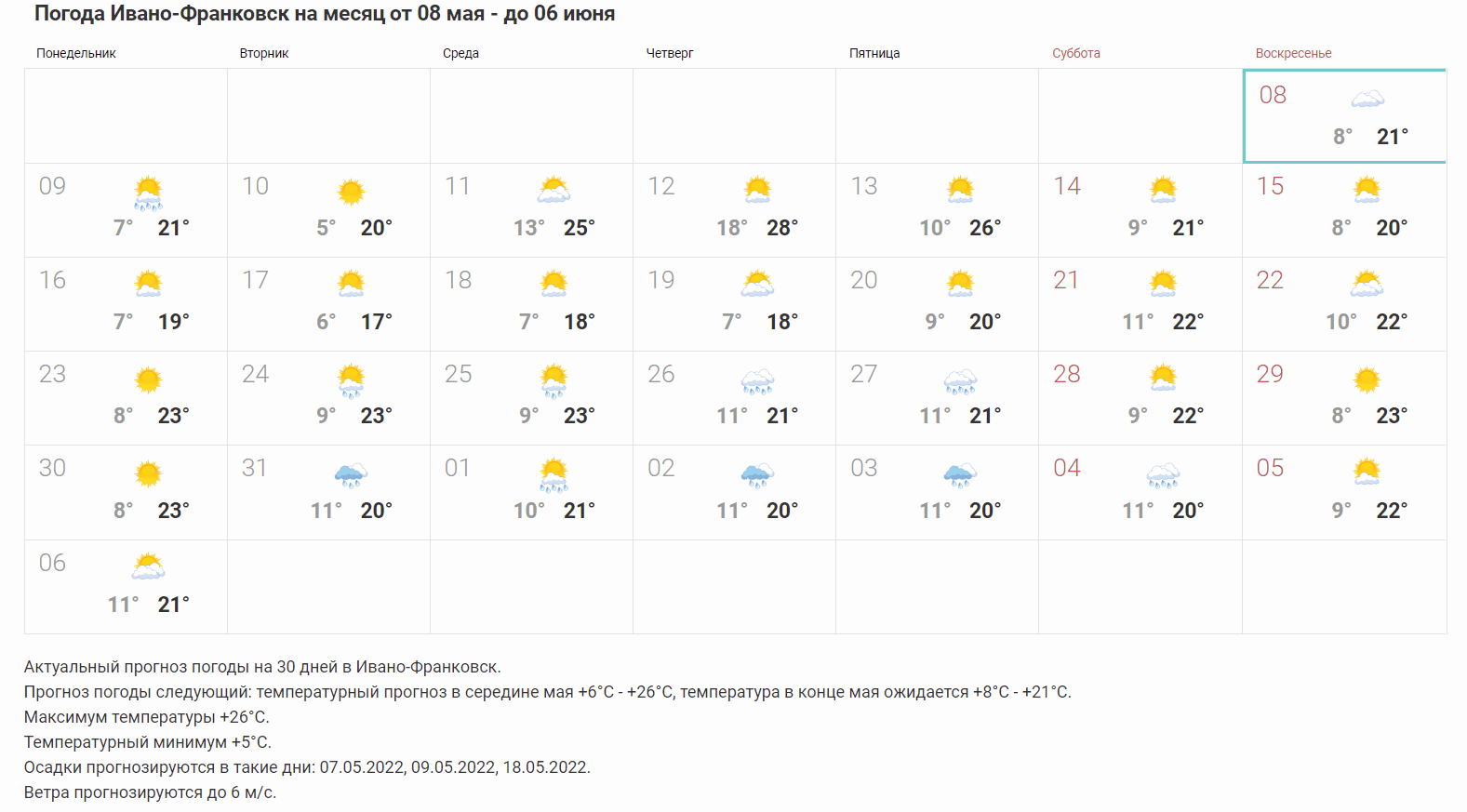 Погода в Ивано-Франковске: прогноз на май