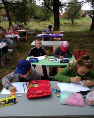 Вчора Наталя Пулишій вперше провела урок малювання у такому форматі. Щоправда, не усім дітям вистачило парт, аби вони сиділи по одному і дотримувалися дистанціїї. Та пізніше стільці і парти донесли. Тому кожен зміг почерпнути з уроку корисне.